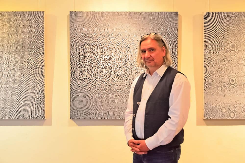 Dann blickt er auf und sagt, dass letztlich alles aus Schwingungen bestehe. Genau diese Schwingungen macht er für den Betrachter in seinen Werken sichtbar und nimmt ihn so auf eine Reise in sein ganz eigenes Universum mit.