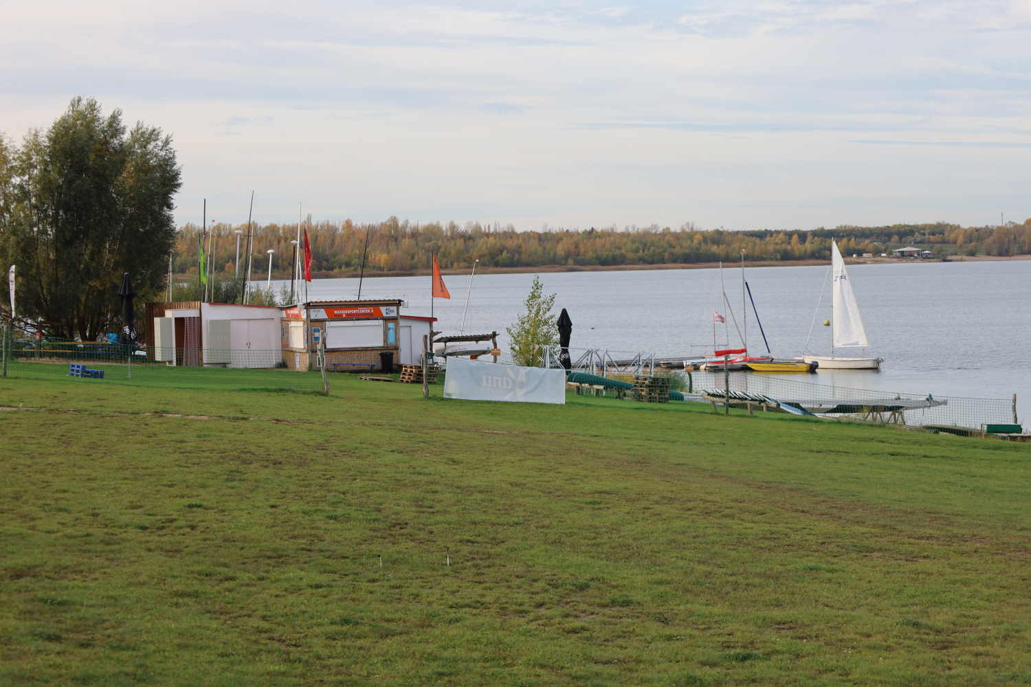 Denn dadurch ist man schon ein wenig abgestrampelt, wenn man auf der Ostseite des Sees an die Schladitzer Bucht kommt und das unübersehbare Camp David, wo man nicht nur sein Segelboot losleinen kann, sondern auch diverse Wassersportkurse belegen kann, Beachball spielen kann und übernachten.