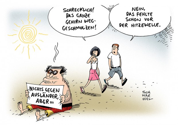 Sommerzeit, Urlaubszeit am Strand und die Sonne knallt so schön. Am Montag bringt sich der Teil von Legida, der kein Geld für einen flotten Griechenlandtripp hat, wieder selbst ums Eck. Diesmal eifrig unterstützt durch das Mutti-Bündnis aus dem Tal der Ahnungslosen. Vielleicht werdens ja wieder 300. Und heute hat sich die AfD endgültig zum politischen Sachsen-Arm der Straßenlatscher (Lügendemonstranten!) gemausert. „Lügenlucke“ (Lügänluggä) haben sie in Essen gerufen und Petry Heil hieß es am Schluss. Die Asylbewerberheime brennen wieder in Sachsen, das leise Kichern am Stammtisch begleitet das fleißige Zündeln – alles läuft nach Plan. Sachsen kommt.