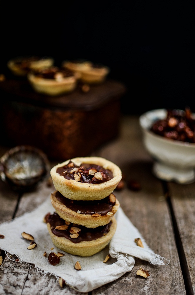 Tartelettes mit Schokoladencreme und Karamellmandeln