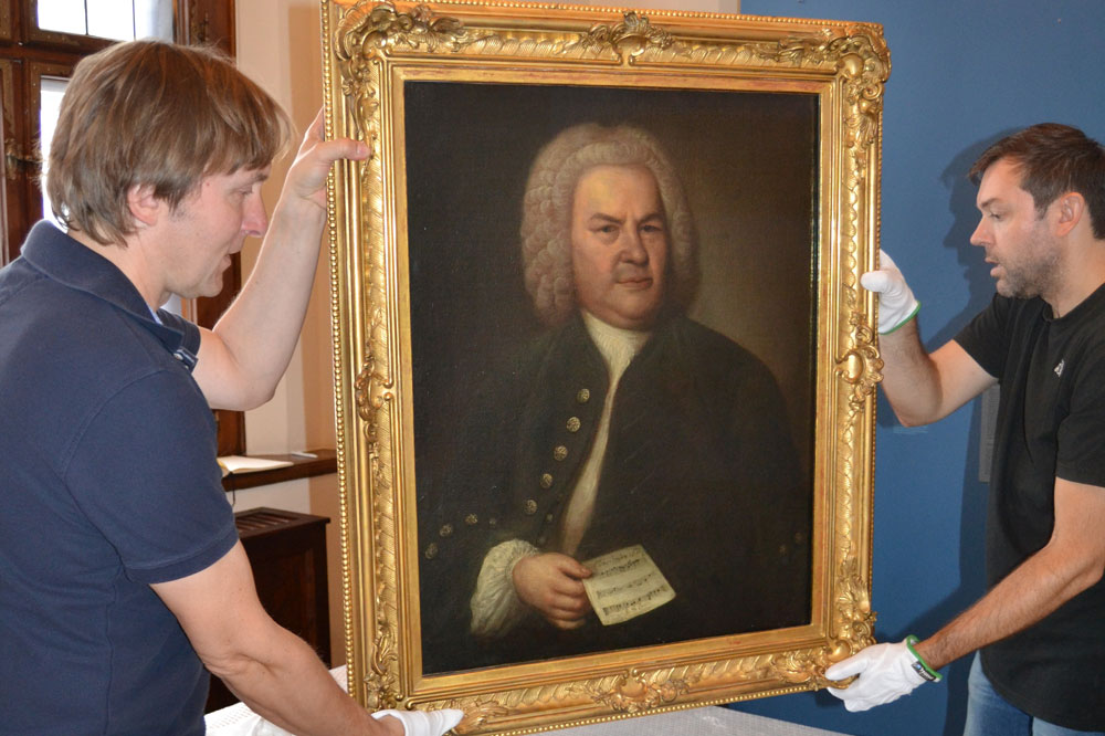 Heute, am Mittwoch, dem 26. August, erhielt das berühmte Porträt von Johann Sebastian Bach, das sich im Alten Rathaus befindet, eine neue Verglasung: ein neuartiges, optisch entspiegeltes Weißglas mit 92-prozentigem UV-Schutz. Möglich gemacht hat dies ein amerikanisches Ehepaar, das beim diesjährigen Bachfest das Stadtgeschichtliche Museum besuchte.