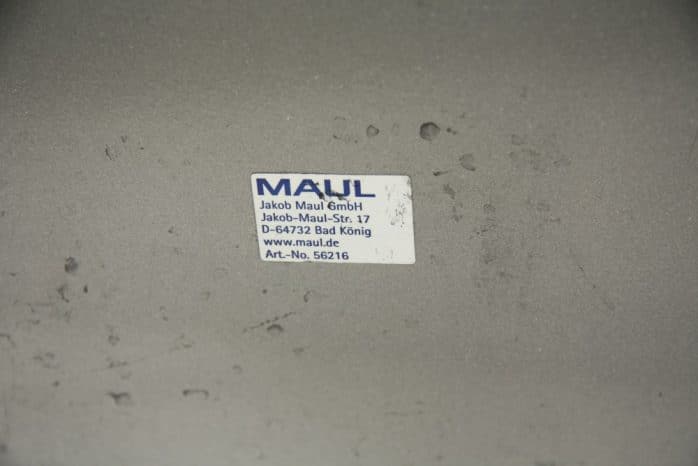 Im Schlossbereich sind Beschädigungen in Form von Hebelspuren zu sehen. Auf der Unterseite befindet sich ein Aufkleber, vermutlich des Herstellers: MAUL – Jakob Maul GmbH, Jakob-Maul-Str. 17, 64732 Bad König, www.maul.de, Artikelnummer 56216. Derzeit liegen keine Erkenntnisse über die Herkunft der Geldkassette vor.