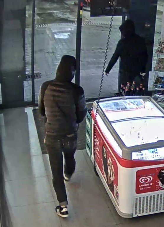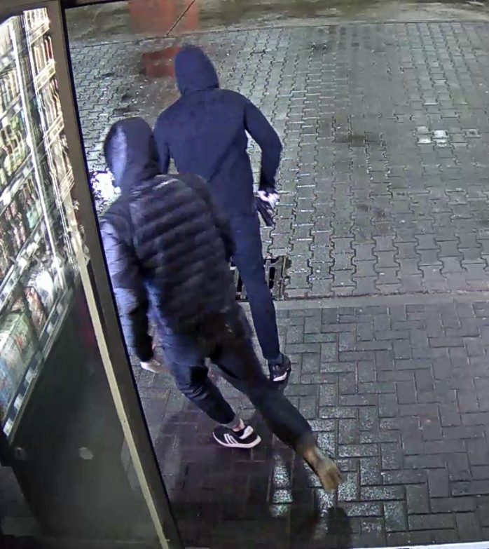 Beide Personen wurden als etwa 1,75 m bis 1,80 m groß beschrieben. Sie trugen dunkle Winterjacken mit Kapuzen, hatten dunkle Hosen an und einer von beiden trug schwarz-weiße Turnschuhe der Marke „Adidas“. Die unbekannten Täter werden scheinbar als Anfang 20 beschrieben und hatten beide eine dünne und hagere Gestalt.