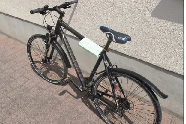 Das Fahrrad wurde von der Polizei beschlagnahmt, konnte aber keinem Eigentümer zugeordnet werden. Es handelt sich um ein schwarzes Cross-/Trekkingfahrrad des Typs „Winora“. Auffällig sind die goldenen Akzente an der Sattel- und der Lenkerstange sowie der blau-weiße Sattel.