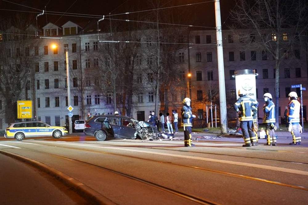 Der Fahrer eines Pkw VW Passat fuhr auf der Breite Straße in stadteinwärtige Richtung. Auf bisher unbekannte kam Art kam er von der Fahrbahn ab, stieß gegen einen Lichtmast und kam mittig auf der Fahrbahn – teils im Gleisbereich zum Stehen. Nach bisherigen Erkenntnissen stieg der Fahrer aus dem verunfallten Fahrzeug und flüchtete vom Unfallort. Der Beifahrer (29) wurde schwerst verletzt zur medizinischen Versorgung in ein Krankenhaus gebracht. Ein weiterer Insasse (28) wurde ebenfalls verletzt und medizinisch versorgt.