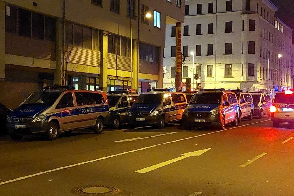 Circa 30 Minuten nach Mitternacht liefen bei der Polizei und der Feuerwehr Meldungen zu brennenden Gegenständen auf der Kreuzung Eisenbahnstraße / Hermann-Liebmann-Straße in Leipziger Stadtteil Volkmarsdorf ein. Vor Ort hatten sich Personen im mittleren dreistelligen Bereich gesammelt. Aus einer Gruppierung von mehreren Dutzend Personen erfolgte ein Bewurf auf die eingetroffenen Einsatzkräfte und –fahrzeuge. Mehrere Polizeifahrzeuge wurden dabei beschädigt. Die Kriminalpolizei hat die Ermittlungen wegen Landfriedensbruchs aufgenommen.