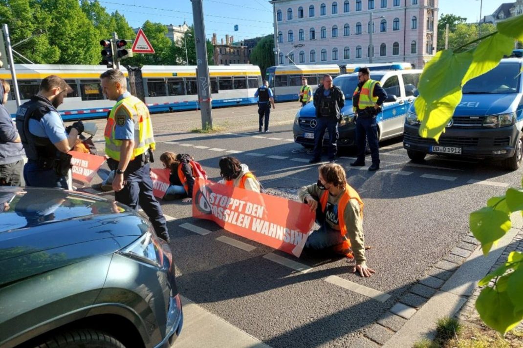 Heute Morgen wurde das Führungs-und Lagezentrum der Polizeidirektion Leipzig informiert, dass sich mehrere Personen auf die Fahrbahn der Jahnallee in stadteinwärtiger Richtung gesetzt haben und die Hände mit Sekundenkleber auf die Straße festkleben. Mitgeführte Plakate deuteten auf Umweltaktivisten hin.
