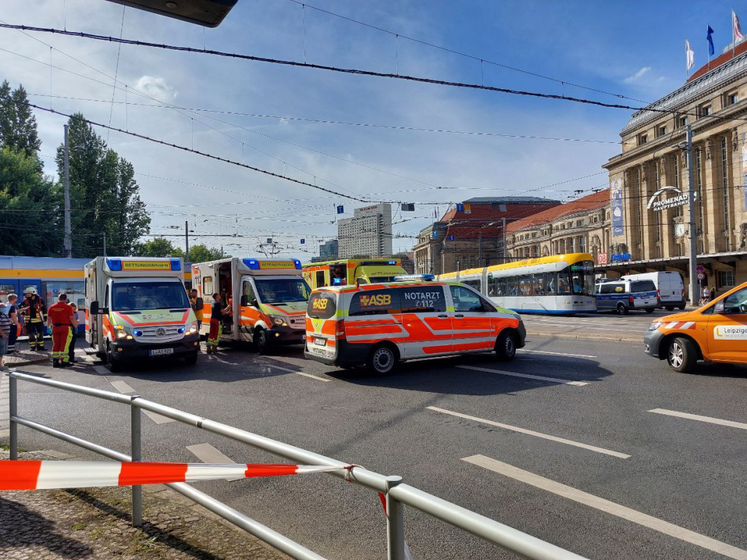 Ersten Schätzungen zufolge liegt der Sachschaden im hohen fünfstelligen Bereich. Derzeit kommt es noch zu Verkehrseinschränkungen zwischen dem Augustusplatz und dem Hallischen Tor. Der Bereich an der Unfallstelle wurde voll gesperrt. Die Sperrungen werden voraussichtlich im Laufe der nächsten Stunde aufgehoben. Der Verkehrsunfalldienst ermittelt zur Ursache.