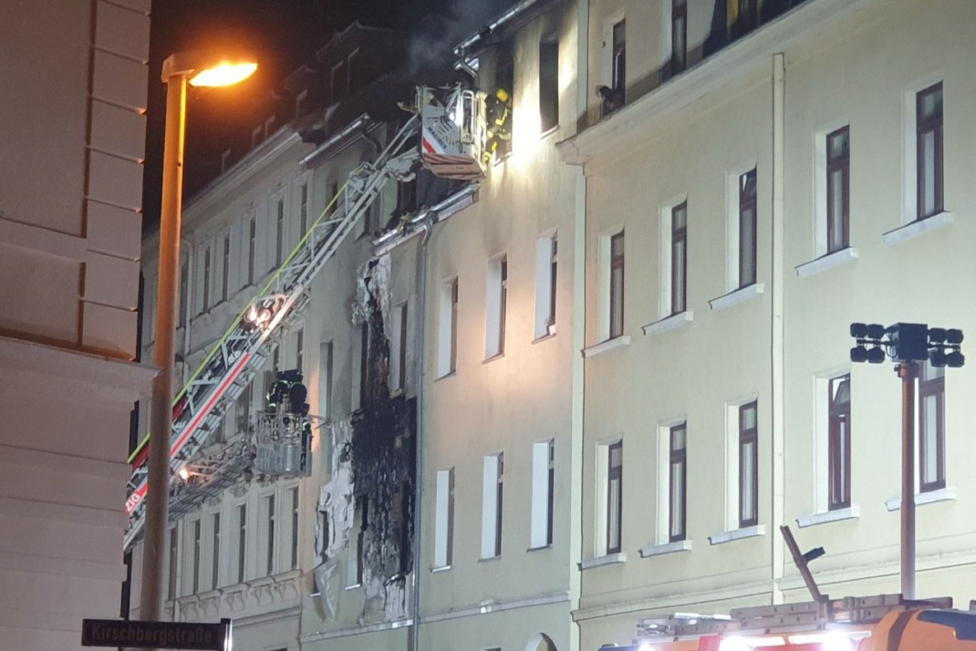 Heute Nachmittag kam es aus bisher ungeklärter Ursache zu einem Wohnungsbrand im ersten Obergeschoss eines Mehrfamilienhauses in der Kernstraße. Das Feuer griff trotz des schnellen Einsatzes mehrerer Feuerwehren auf das gesamte Gebäude über. Teilweise mussten angrenzende Gebäude, in denen sich noch Personen aufhielten, evakuiert werden.