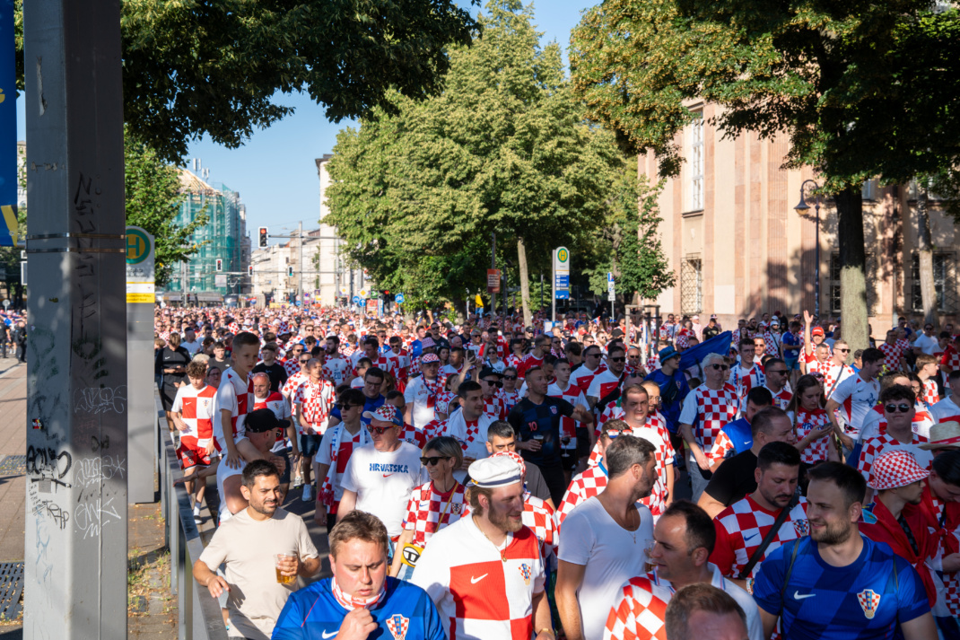 Sowohl die Fan Zone als auch der Fan Meeting Point am Wilhelm-Leuschner-Platz eröffneten planmäßig 13:00 Uhr. Letzterer galt im Vorfeld als zentraler Treffpunkt für die kroatischen Fans. In der Spitze befanden sich über 3.000 Personen dort. Außerdem sammelten sich mehrere tausend Fans auf dem Markt, darunter auch vereinzelt italienische Fans. An beiden Plätzen zündeten Personen mehrfach pyrotechnische Erzeugnisse.