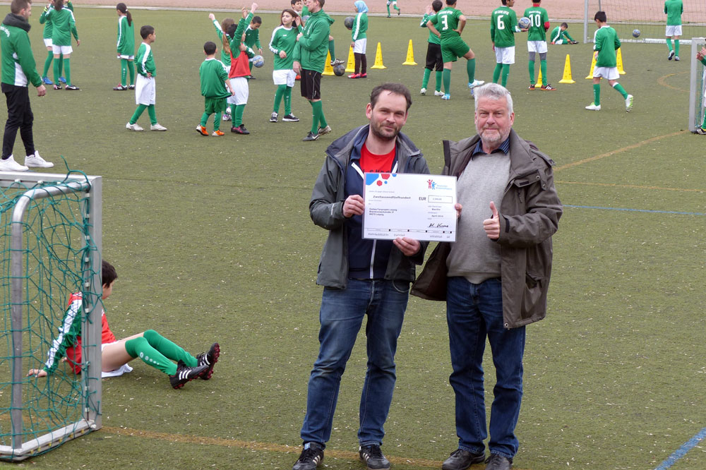 Gemeinsam mit den Fans vom BSG Chemie Leipzig nahm heute Sebastian Kirschner vom Outlaw-Fanprojekt Leipzig einen Scheck über 2.500 Euro vom Deutschen Kinderhilfswerk e. V. im Alfred-Kunze-Sportpark entgegen. Mit dem Geld unterstützt das Deutsche Kinderhilfswerk das Projekt „Refugees United – Reloaded“ – ein Fußballcamp für geflüchtete Kinder und Jugendliche in den Osterferien, bei dem neben dem Sport auch gemeinsame Unternehmungen auf dem Trainingsplan stehen.