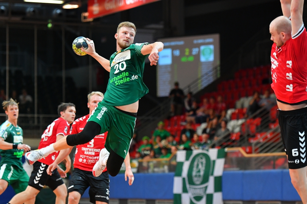 Der SC DHfK Leipzig steht im Achtelfinale des DHB-Pokals. Die Mannschaft von Cheftrainer André Haber besiegte am Sonntag im Finalspiel des First4-Turniers in Hagen den ASV Hamm-Westfalen mit 37:24 (20:13). Bester DHfK-Torschütze war Philipp Weber mit 11 Treffern, gefolgt von Yves Kunkel (8) und Niclas Pieczkowski (5). Das Achtelfinale im DHB-Pokal wird am 17./18. Oktober ausgetragen.
