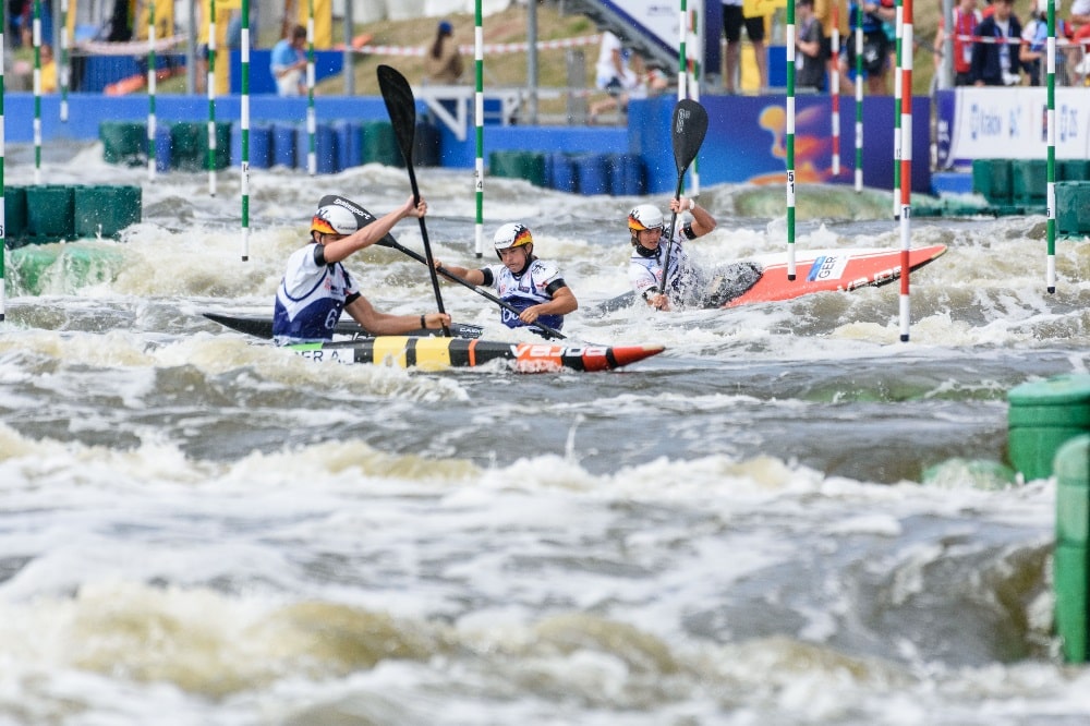 Die bittere Seite des Sports bekamen erneut die Juniorinnen im Kajak-Einer zu spüren. Mit einem couragierten Lauf und einer 21 Sekunden-Führung kamen die drei jungen Mädchen ins Ziel. Für den Moment war die Freude groß – das musste ihnen erst einmal einer nachmachen. Leider taten das die starken Teams aus Frankreich, Tschechien und Großbritannien auch und setzten sich doch noch vor die Deutschen. Für Emily Apel, Annkatrin Plochmann und Liv Konrad bedeutete dies erneut den undankbaren vierten Rang, wie auch schon zwei Wochen zuvor bei der Europameisterschaft.