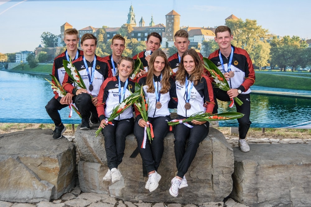 Zu Beginn der mehrtägigen Weltmeisterschaften konnten die Nachwuchsathleten in den Mannschaftsentscheidungen eine Silber- und zwei Bronzemedaillen einfahren. Am Vormittag bescherten die Canadier-Junioren dem Team den ersten Erfolg des Tages. Mit einem fehlerfreien Lauf und nur 0,9 Sekunden Rückstand sicherte sich das Team um den Augsburger Julian Lindolf und den beiden Hallensern Benjamin Kies und Felix Göttling den Silberrang hinter den starken Franzosen. Damit konnten die drittplatzierten der EM vor zwei Wochen ihre Mannschaftsleistung noch einmal verbessern.