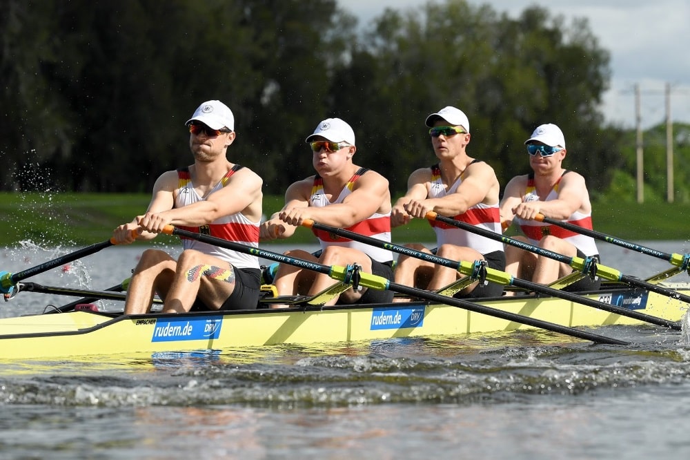 Franz Werner (18, Pirna), David Junge (21, Potsdam), Moritz Wolff (19, Berlin) und Johannes Lotz (22, Hanau) gewinnen nach einem engen Bord-an-Bord-Kampf mit Großbritannien und Italien Silber in einem stark besetzten Doppelvierer-Feld. Sowohl im Vorlauf als auch im Halbfinale hatten die Italiener jeweils ihren Bugball vor dem deutschen Boot.
