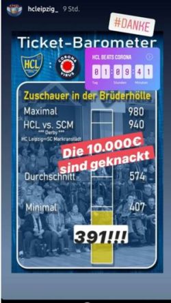 Wir sind MEGA – Stolz. Unsere Ticketaktion, welche bis zum morgigen Sonntag den 03.05.2020 läuft hat aktuell 411 Tickets und 10.600 € eingebracht. Dieses Geld wird dringend benötigt !!! Auch wenn unsere Ticketaktion zum fiktiven Heimspiel HC Leipzig vs. Corona erst am Sonntag dem 03.05.2020 zu Ende geht, so können wir doch auf eine stolze Summe blicken, welche unsere Fans und Unterstützer ….also unsere HC Leipzig Familie zusammen gespendet haben.