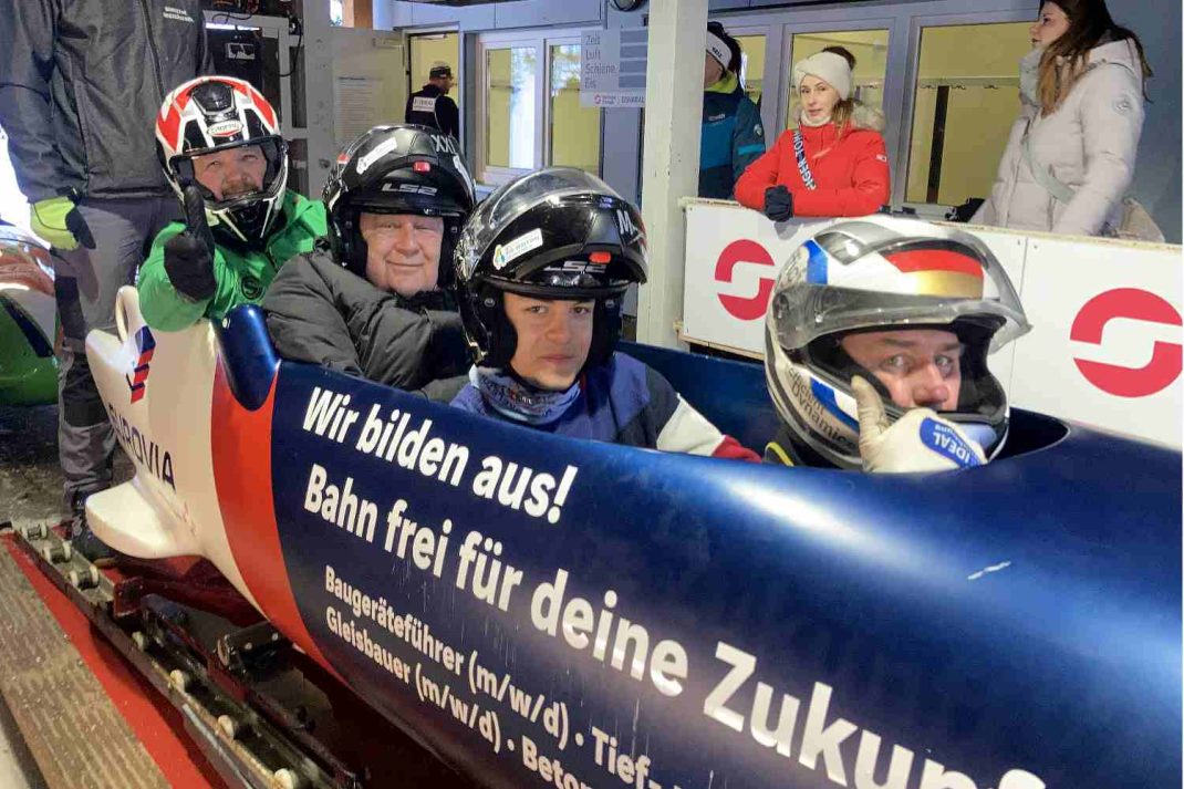 Mit Helm ausgestattet nahm Merbitz gemeinsam mit Tillmann Hecking aus Leipzig hinter dem ehemaligen Juniorenweltmeister René Thierfelder im Eisgefährt Platz und düste mit über 100 km/h den 1.413 Meter langen Eiskanal in Altenberg hinunter. Der SC DHfK-Präsident war sichtlich fasziniert: „Es war ein beeindruckendes Erlebnis und es ist Wahnsinn, wie eng es in so einem Bob ist und mit welcher Kraft und Geschwindigkeit er durch den Eiskanal rast.