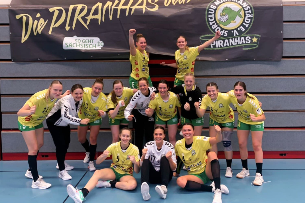Die Handballerinnen des SC Markranstädt haben den zweiten Auswärtserfolg und den vierten Saisonsieg hintereinander eingefahren. Bei der Bundesliga-Reserve der HSG Blomberg-Lippe II gewannen die Piranhas am Sonntag mit 29:27 (17:13) und setzten sich mit 10:4 Zählern in der Spitzengruppe der 3. Bundesliga Nord fest. Beste SCM-Werferinnen waren Nele Mertens und Linda Zöge mit jeweils sechs Toren sowie Michelle Paluszkiewicz mit fünf Treffern.