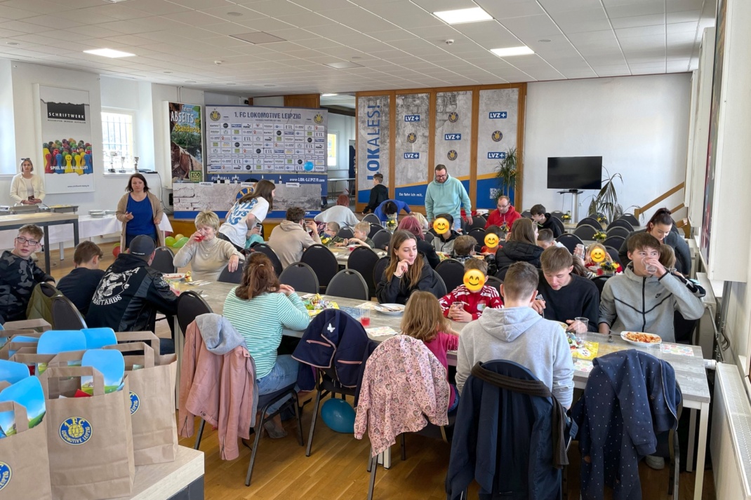 Der 1. FC Lokomotive Leipzig hat am Ostermontag ein Osteressen für sozial benachteiligte Kinder veranstaltet. Insgesamt folgten über 40 Kinder und Betreuer von verschiedenen Kinderheimen in Machern, den Kinderhäusern in Lützschena und Stahmeln, dem Projekt Stabil aus der Riebeckstraße 1 in Leipzig und dem Verein Straßenkinder Leipzig e.V. der Einladung und kamen ins Bruno-Plache-Stadion.