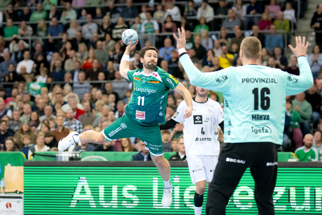 Leipzig startete entschlossen und mit Höchstgeschwindigkeit ins Spiel und führte nach zweieinhalb Minuten mit 3:2. Dann folgte die erste kleine Unglückssträhne. Lukas Binder bediente Franz Semper mustergültig per Kempa-Trick, doch der zukünftige Leipziger Tomáš Mrkva packte im THW-Kasten eine Monsterparade aus.