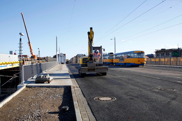 Der Verkehr über die beiden Antonienbrücken kann wieder in beiden Richtungen rollen. Heute, 8. Dezember, wurden sie freigegeben. Leipzigs größtes Brückenbauprojekt der letzten Jahre ist damit erfolgreich abgeschlossen, die Antonienstraße als wichtige Ost-West-Achse zwischen Innenstadt und Grünau steht wieder ohne Einschränkung für Autos und Trams zur Verfügung. Insgesamt gut zweieinhalb Jahre war der Bereich zwischen den Knoten Klingenstraße und Diezmannstraße Baustelle gewesen ‒ die beiden 1969 bzw. 1971 errichteten Brücken über die Eisenbahnstrecken bzw. die Rangiergleisanlage waren aufgrund der hohen Verkehrsbelastung und infolge von Materialmängeln verschlissen und mussten abgerissen und durch neue ersetzt werden. Zudem galt es, die Straße in diesem Abschnitt zu erneuern und u. a. mit einer sicheren Radverkehrsführung zu versehen.