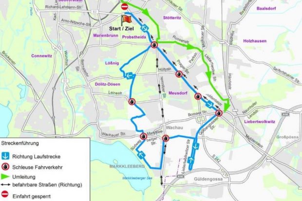 Am Sonntag, den 13. Oktober, fällt im Südosten Leipzigs der Startschuss zum Halbmarathon. Im Zuge der Sportveranstaltung muss zwischen 9 und 14 Uhr die Laufstrecke gesperrt und durch Helfer des Veranstalters gesichert werden. Der Aufbau der Beschilderung beginnt bereits ab 5 Uhr.