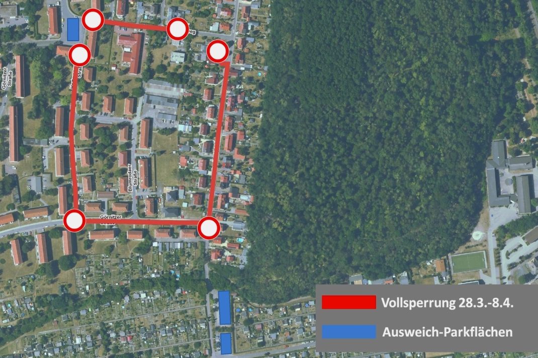 Um die Arbeiten im Wohngebiet Borna West auszuführen, werden die Anwohner aufgefordert, ihre Fahrzeuge aus dem Baubereich zu entfernen. Es besteht für die Bauzeit die Möglichkeit des Abstellens von Pkw in den dafür vorgesehenen Bereichen (an der Luckaer Straße sowie am „Bergmannsplatz“ – vgl. Anlage). Die Zufahrt für Rettungsfahrzeuge wird ständig gewährleistet.