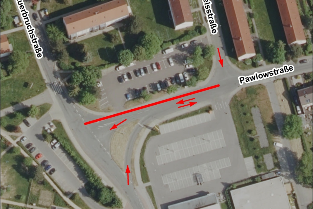 Nach dem Rohrschaden an der Wasserleitung in der Pawlowstraße, Ecke Sauerbruchstraße beginnen in ab Montag, dem 15.07.2024 die Reparaturarbeiten an der Leitung. Zur Sicherung der Arbeiten muss die Fahrbahn der Pawlowstraße im Einmündungsbereich zur Sauerbruchstraße halbseitig gesperrt werden.