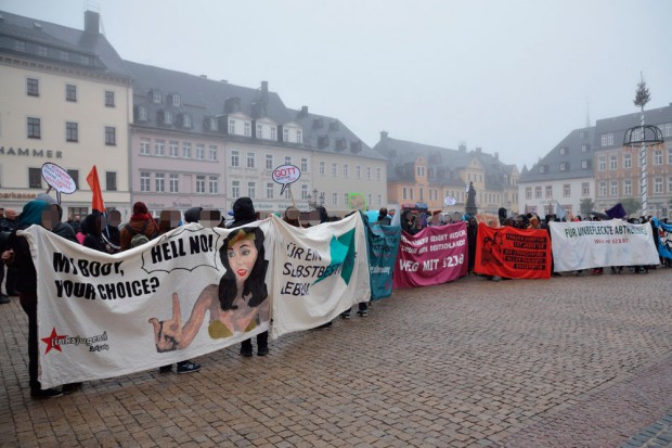 Am Montagnachmittag demonstrierten in Annaberg-Buchholz mehr als 200 Menschen unter dem Motto: "Für unbefleckte Abtreibung - Weg mit §218!", um feministische Inhalte in die Öffentlichkeit zu tragen. Anlass dafür war der sogenannte "Schweigemarsch für das Leben" von christlich-fundamentalistischen Abtreibungsgegner_innen.