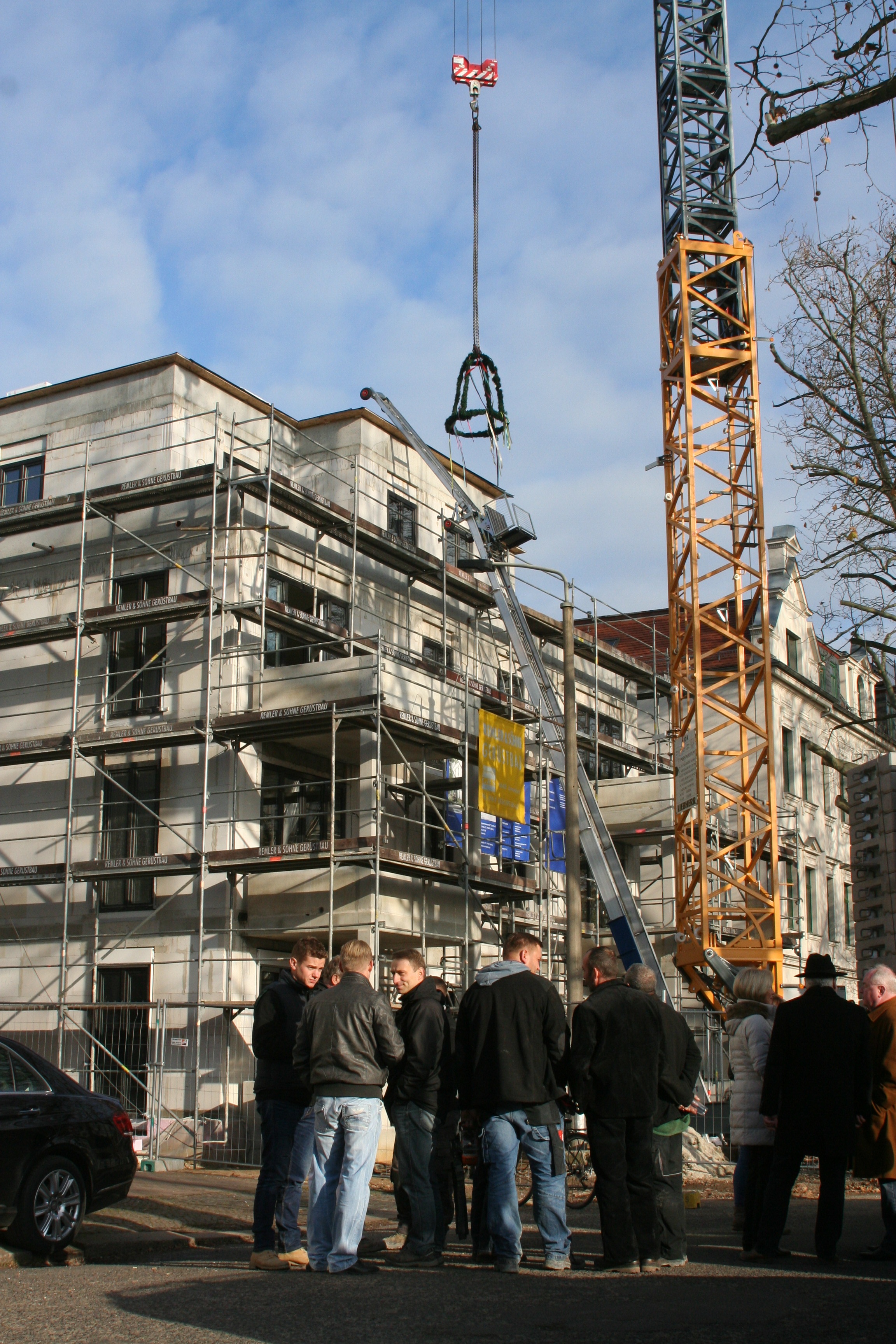 Die "Lipsia" eG startet eine Neubauoffensive. Freitag, 27.11., wurde für zwei Gohliser Neubauten der Leipziger Wohnungsgenossenschaft Richtfest gefeiert. In der Bleichertstraße 13 ist der Rohbau des zweiten Neubaus abgeschlossen. Ausbaugewerke wie Elektro, Innenputz und Estrich haben bereits begonnen. Das zweite Gebäude im Schillerweg 6a nähert sich bereits der Fertigstellung.