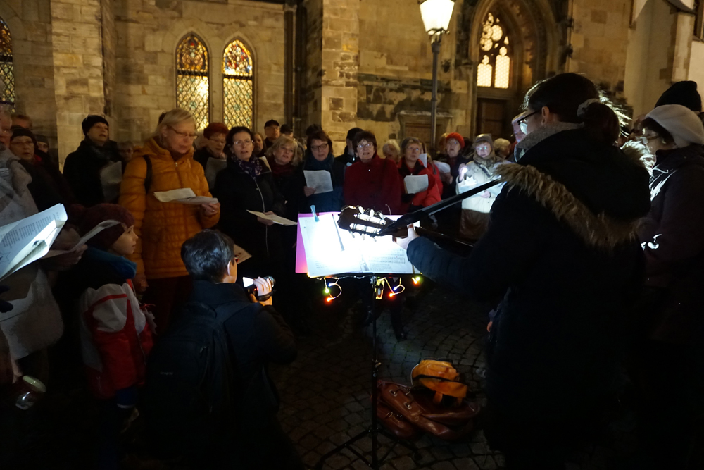 Die Stiftung Bürger für Leipzig lädt von 30. November bis 21. Dezember jeden Mittwoch um 16:30 Uhr zum Bürgersingen im Advent. Gesungen wird im Freien, unterhalb des Turmes der Thomaskirche. Beim Bürgersingen zählt allein die Freude am Singen, nicht das Talent – auch zur Weihnachtszeit. Die Sängerin und Musikpädagogin Gabriele Lamotte leitet das Singen an und begleitet den Laienchor auf der Gitarre. Ein besonderer Höhepunkt: Zum Abschluss des Singens stimmen die Bürgersänger auch in diesem Jahr zu den Klängen der Turmbläser ein, die in der Adventszeit auf dem Turm der Thomaskirche musizieren.