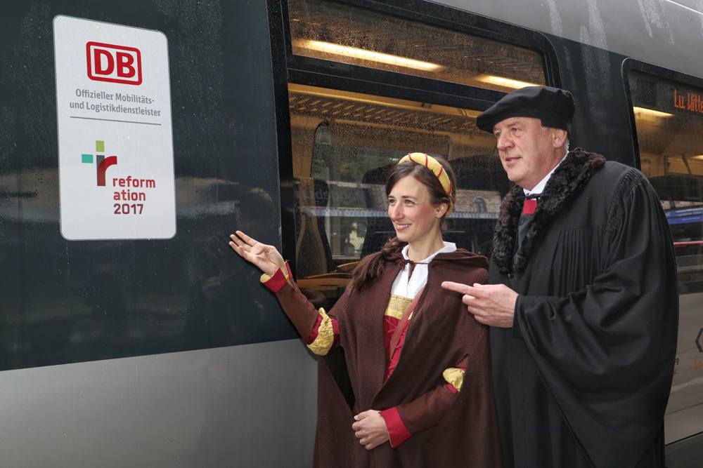 Die DB ist offizieller Mobilitäts- und Logistikpartner des Jubiläums „500 Jahre Reformation“. Um diese Partnerschaft nach außen deutlich zu machen, sind alle 80 Fahrzeuge des Mitteldeutschen S-Bahn-Netzes sowie 47 Dieseltriebwagen des Thüringer Neigetechnik-Netzes und der Nordthüringen-Bahn mit einem Gemeinschaftslogo beklebt. Damit trägt die Verbundenheit zwischen DB und Reformationsjubiläum 2017 e. V. ein sichtbares Zeichen. „So werben wir nicht nur im Ursprungsland der Reformation, sondern sind auch in Sachsen, Thüringen, Bayern, Brandenburg, Hessen und Niedersachsen als rollende Botschafter für das Reformationsjubiläum unterwegs“, erklärt Jost Beckmann, Leiter Fahrgastmarketing bei DB Regio Südost.