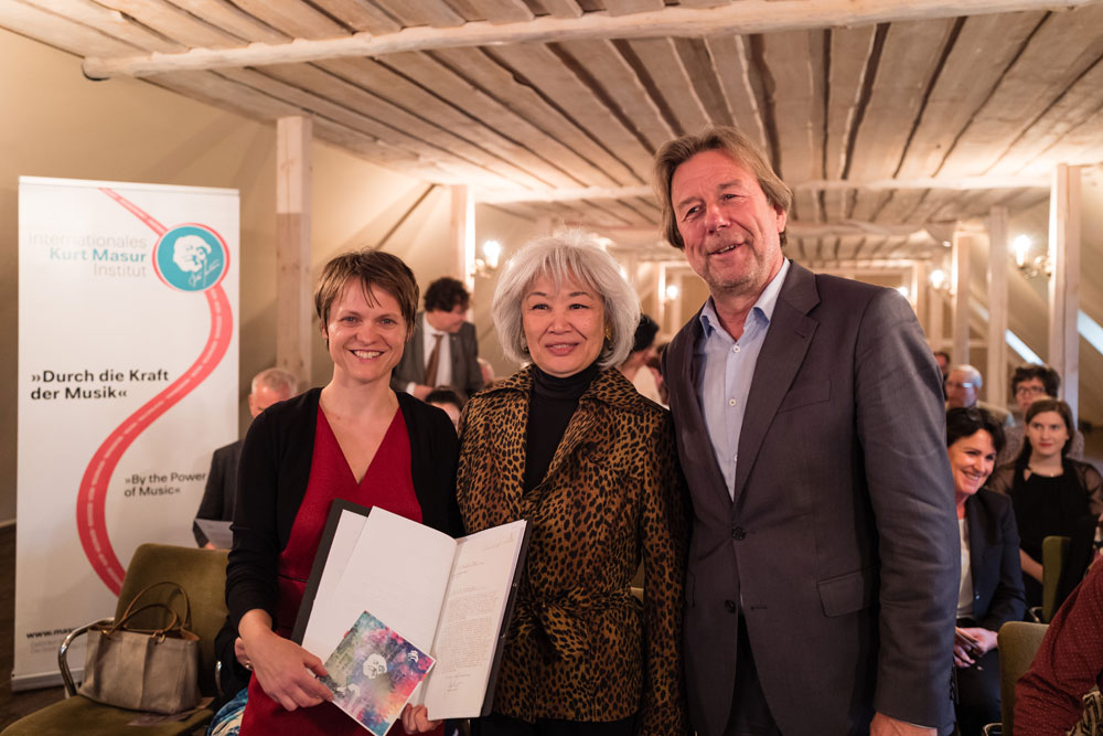 Außerdem sind Konzerte mit Musikern der Mendelssohn-Orchesterakademie des Gewandhauses, der Kurt-Masur-Orchesterakademie der Dresdner Philharmonie sowie Stipendiaten der Anne-Sophie-Mutter-Stiftung geplant. Ergänzt wird das Festwochenende mit Brief-Lesungen aus dem Masur-Nachlass sowie einem Education-Programm zusammen mit Schülern der Kurt-Masur-Schule Leipzig. Dies verkündeten gestern Abend Tomoko Masur (Präsidentin IKMI) und Anna-Barbara Schmidt (Geschäftsführerin IKMI) bei der öffentlichen Präsentation des Institutes im Mendelssohn-Haus Leipzig.