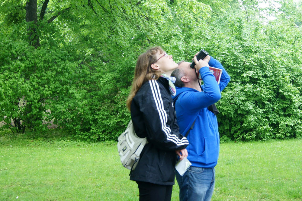Der NABU-Regionalverband Leipzig hatte am Aktionswochenende wieder Exkursionen zur Stunde der Gartenvögel angeboten, bei denen man etwas über Vogelschutz erfahren und sich an der Zählung beteiligen konnte. So fand am Samstag, 13. Mai 2017, bereits um 8 Uhr morgens eine Exkursion durch den Volksgarten Schönefeld statt, später gab es eine abendliche Vogelexkursion an der Auwaldstation in Lützschena. Am Sonntag trafen sich um 10 Uhr Vogelfreunde zu einem Rundgang auf dem Leipziger Südfriedhof.