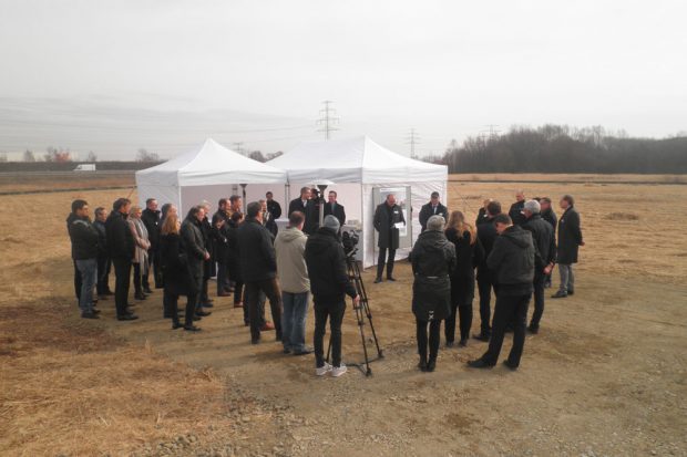 Auf der Außenfläche entstehen außerdem 120 Stellplätze sowie eine hochwertig gestaltete Grünanlage mit Wasserbecken. Zum feierlichen Spatenstich am Montag, 5. März, empfingen Lars Luderer aus der Goldbeck-Geschäftsführung sowie die Geschäftsführer der Goldbeck Nordost GmbH Bernd Mönch und Klaus E. Hänsel etwa 30 Gäste aus Politik, Verwaltung und Wirtschaft. Bürgermeister Uwe Albrecht begrüßte in seiner Ansprache die Entscheidung für den Standort und bezeichnete sie als „wichtiges Signal für den wachsenden Industrie- und Arbeitsstandort Leipzig.“