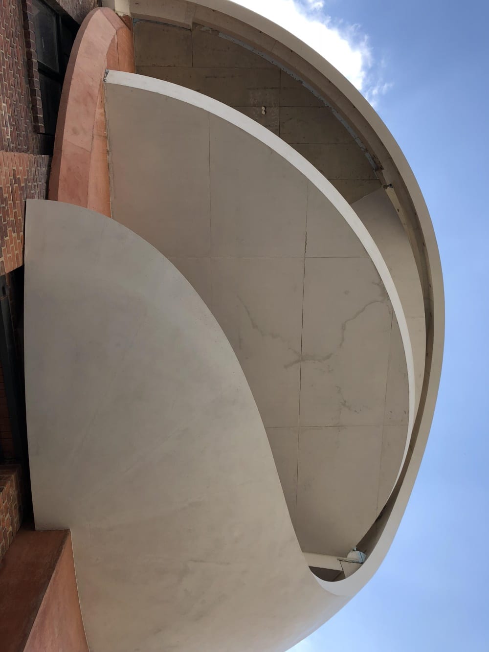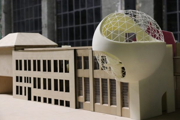 In einem seiner letzten Entwürfe skizzierte der 2012 verstorbene brasilianische Architekt die aus Stahlbeton harmonisch in das Altbaugefüge eingepasste Kugel mit 12 Metern Durchmesser. In ihrem Inneren entstehen auf zwei Ebenen eine öffentlich zugängliche Lounge mit Café und Bar unter einer Glaskuppel. Am Rundgangswochenende können Besucher einen Blick auf den fertigen Rohbau des Architekturkunstwerkes werfen. Private Begehungen der Baustelle können auf Nachfrage gerne organisiert werden.