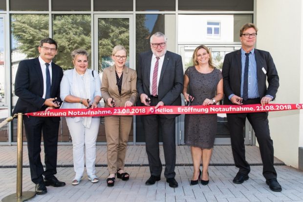 Die Helios Klinik Leisnig (Landkreis Mittelsachsen) hat eine neue Notfallaufnahme. Heute (23. August 2018) nahm Staatssekretärin Regina Kraushaar gemeinsam mit dem Leisniger Bürgermeister Tobias Goth, dem Regionalgeschäftsführer der HELIOS Kliniken der Region Ost, Dr. Roland Bantle, und der Klinik-Geschäftsführerin der HELIOS Klinik Leisnig, Peggy Kaufmann, an der feierlichen Eröffnung der Notfallaufnahme teil. Mit rund 2,4 Millionen Euro förderte der Freistaat Sachsen die Investition in den Erweiterungs- und Umbau der Notfallaufnahme.