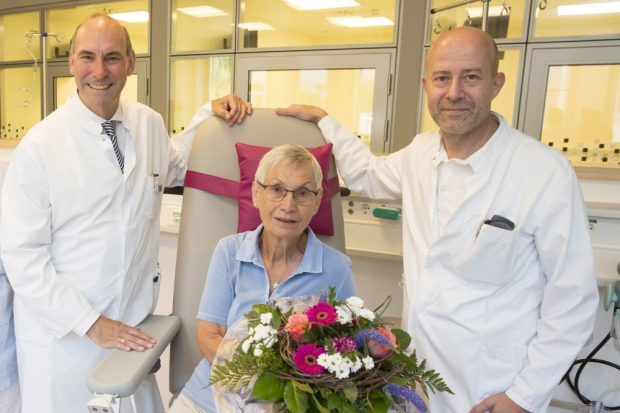 Die 75-Jährige ist bereits seit gut zwei Jahren in Behandlung am UKL. Sie ist an Brustkrebs mit Knochenmetastasen erkrankt. Alle drei Wochen bekommt sie Infusionen – von nun an in den neuen Räumlichkeiten im Erdgeschoss von Haus 7 in der Liebigstraße 22. „Ich bin hier schon immer in guter Behandlung, egal wo“, sagt sie, „die Schwestern und Ärzte sind kompetent und freundlich. Ich fühle mich gut aufgehoben.“ Nach eigener Einschätzung geht es Elke Pauli gut, so gut es einem mit dieser Krankheit eben gehen kann: „Ich habe Lebensqualität zurückgewonnen, ich kann wieder alles machen.“ Auf das Haus sei sie neugierig: „Ich möchte sehen, was hier neu und interessant ist.“
