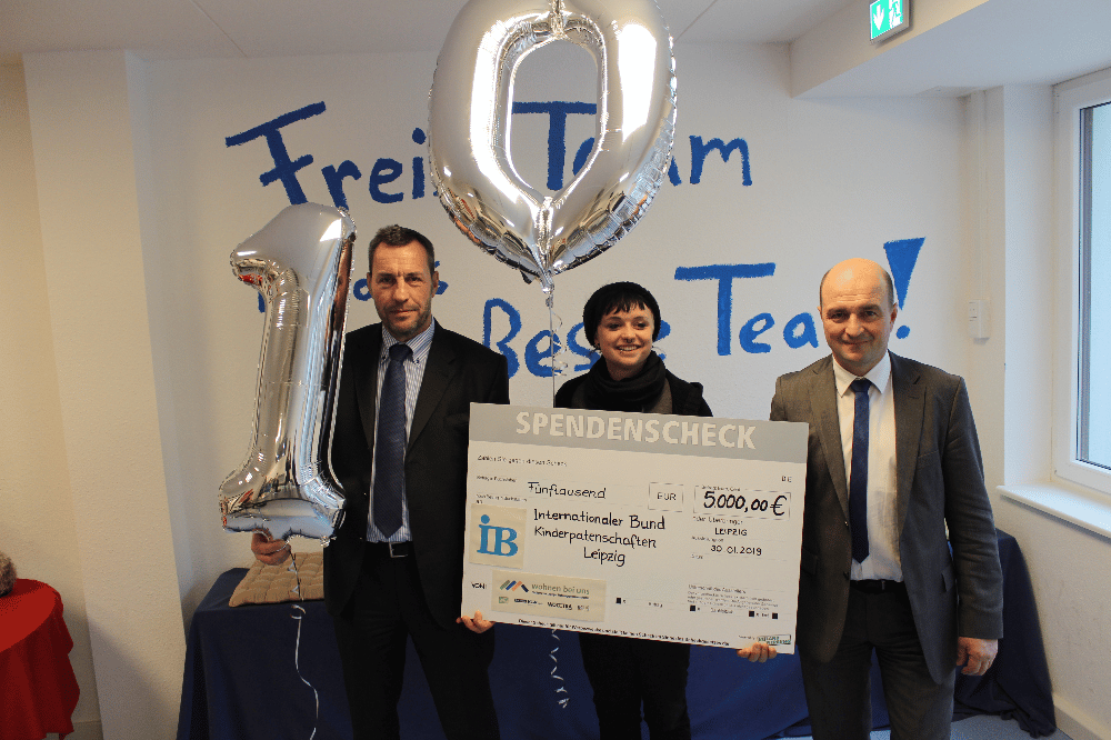 Die Plattform „wohnen bei uns“ (wbu) hat am Mittwoch, 30. Januar 2019, ihre Partnerschaft mit dem Internationalen Bund (IB) bestätigt. Anlässlich der offiziellen Wiedereröffnung des Offenen Freizeittreffs 50° Nordost in Thekla überreichten Steffen Foede, Vorstand Wohnungswirtschaft / Technik der Wohnungsgenossenschaft UNITAS eG, und Wolf-Rüdiger Kliebes, Vorstandsvorsitzender der VLW eG, stellvertretend für wbu eine Spendensumme in Höhe von 5.000,00 € an den IB und das Projekt Kinderpatenschaften Leipzig. Dieses feiert 2019 sein zehntes Jahr des Bestehens.
