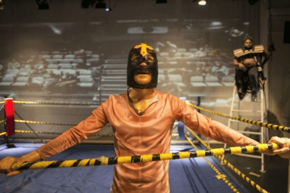 Das Berliner Musiktheaterkollektiv „glanz&krawall“ präsentiert im Ballsaal der Schaubühne Lindenfels seine Produktion „Catch3000“ und katapultiert dabei Heinrich von Kleists „Penthesilea“ und Claudio Monteverdis „Combattimento di Tancredi e Clorinda“ in den Wrestling-Ring.