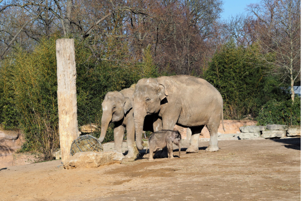 Das am 25. Januar geborene Elefantenkalb erkundet ab heute je nach Wetterlage und Gruppensituation zusammen mit den Elefantenkühen Don Chung (36) und Rani (9) zeitweise die Außenanlagen des Elefantentempels. Dieser Schritt war nötig, weil die Aktivität unter freiem Himmel nicht nur die allgemeine Verfassung und insbesondere die körperliche Fitness verbessern, sondern auch die für ein gesundes Aufwachsen notwendige Versorgung mit UV-Licht sicherstellt.