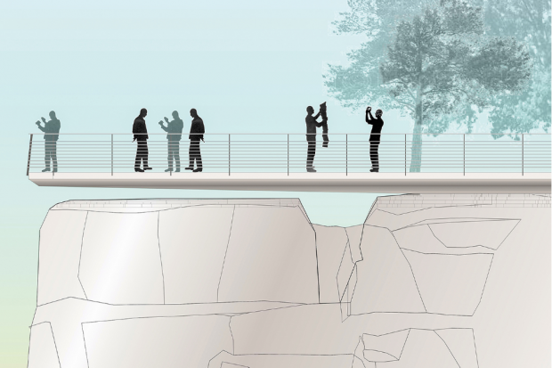 Die Planungen sehen wie bisher die Errichtung eines schwebenden Stegs vor, der sich lediglich im hinteren Bereich auf dem Felsen abstützt und im vorderen erodierten Bereich des Felsens in geringer Höhe frei über diesem schwebt.