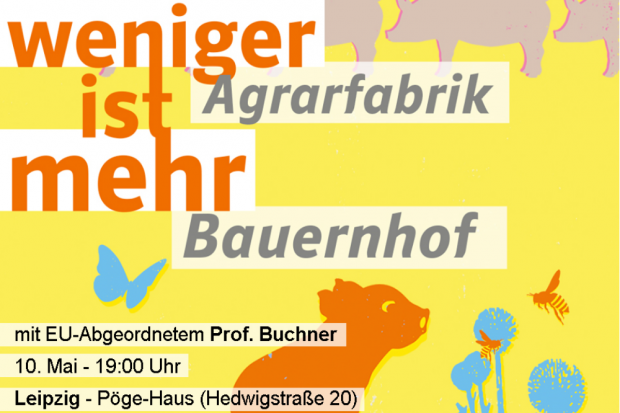 Nun kommt er am 10. Mai nach Leipzig, um mit seinem Vortrag „Weniger Agrarfabrik ist mehr Bauernhof“ aufzurütteln. Zu der öffentlichen und kostenlosen Veranstaltung um 19:00 Uhr im Pöge-Haus (Hedwigstraße 20) sind alle Bürgerinnen und Bürger herzlich eingeladen. Die schwerwiegenden Folgen der industriellen Massentierhaltung für Mensch, Tier und Umwelt werden ebenso thematisiert wie die möglichen und dringend notwendigen Alternativen.