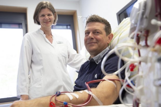 Heute ganz gut, ich habe die Dialyse gut vertragen. Es gibt da sehr unterschiedliche Tage, und nicht immer steckt man diese fünf Stunden so einfach weg. Aber insgesamt fühle ich mich auch jetzt, nach der Umstellung von der Heimdialyse auf eine Blutreinigung hier im Zentrum am UKL, gut. Ich kann weiterhin arbeiten, auch dank der Unterstützung meines Arbeitgebers, und ich kann weiterhin Sport treiben. Das ist wichtig für mich, damit ich den Durchhaltewillen nicht verliere – ich weiss ja, dass vermutlich noch fünf Jahre Wartezeit vor mir liegen.
