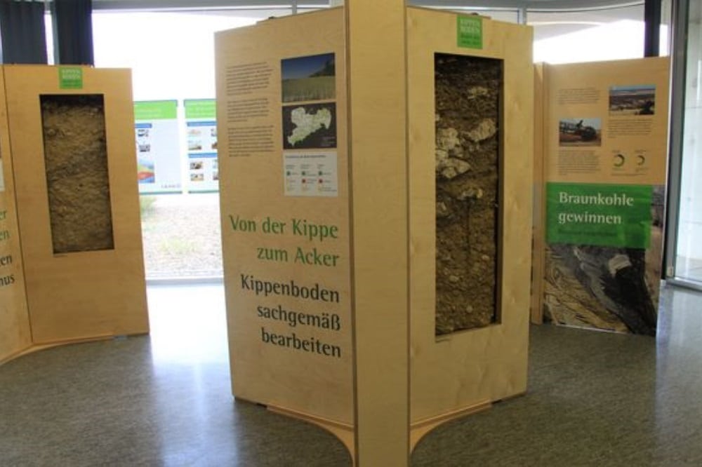 Die Beschaffenheit des Lausitzer und Mitteldeutschen Kippenbodens, die Herausforderungen bei seiner Wiedernutzbarmachung und die über Jahrzehnte weiterentwickelten Technologien in der Rekultivierung sind Thema der Ausstellung, das auf Schautafeln und mit Bodenlackprofilen veranschaulicht wird.