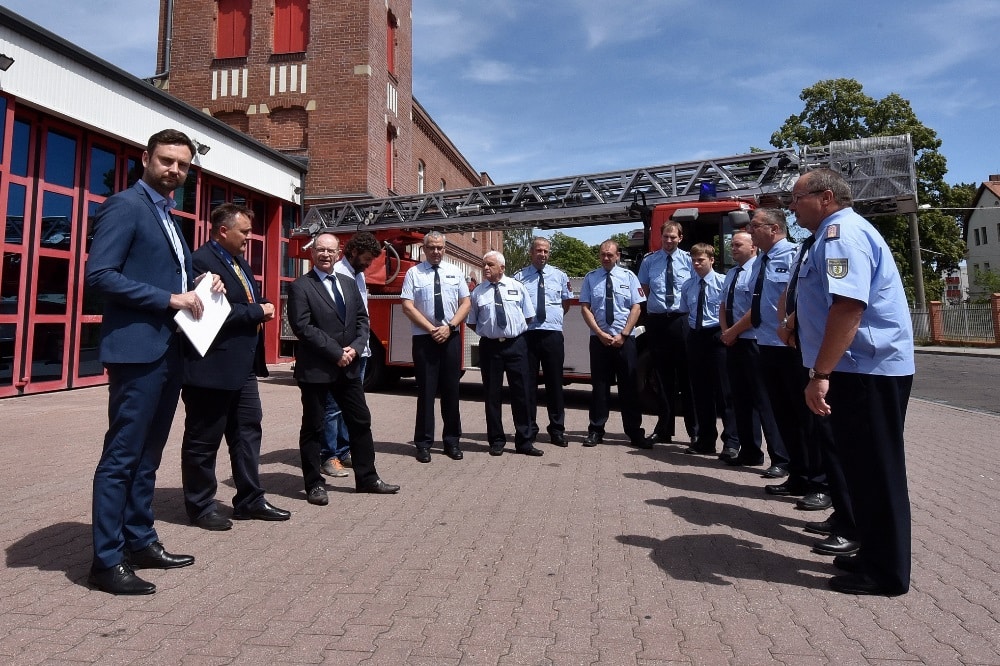 Diese frohe Botschaft für die Kameraden der Freiwilligen Feuerwehr in Taucha überbringt am Sonnabend (6. Juli 2019, 14 Uhr) der 2. Beigeordnete des Landkreises Nordsachsen, Jens Kabisch. Der Bescheid, den er zur Taufe des neuen Hilfslöschfahrzeugs überreicht, ist knapp 526.000 Euro schwer. Bereits am Donnerstag (4. Juli 2019) durften sich die Wehren in Oschatz und Schkeuditz darüber freuen. „Freiwilligkeit lebt vom Mitmachen und Engagement, wir können das Ganze mit Technik unterstützen“, sagt Jens Kabisch.