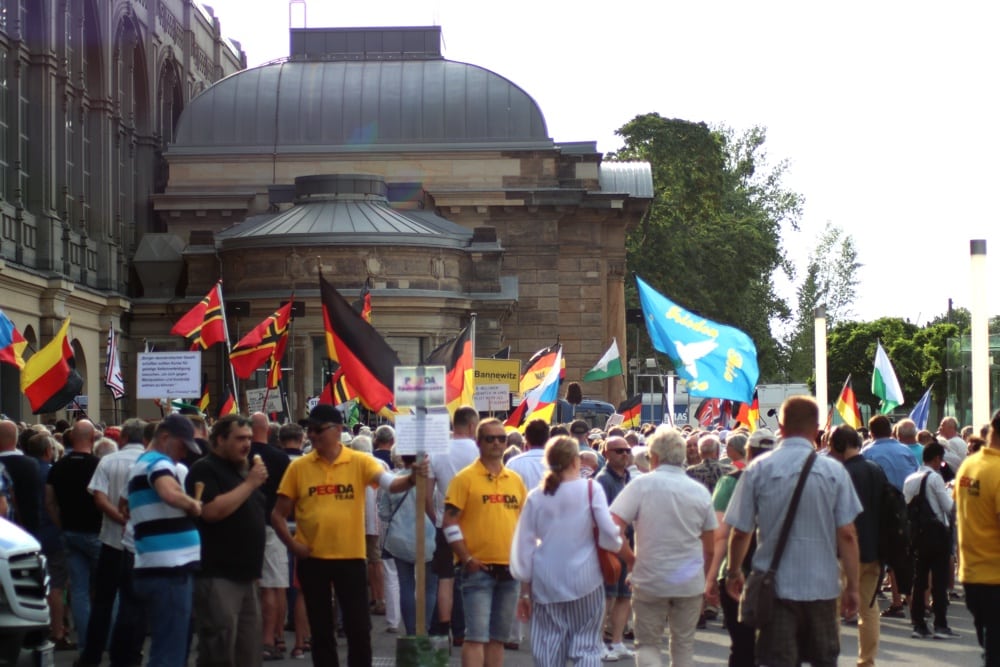 Seit fünf Jahren bewegt die islamfeindliche und rassistische Initiative „Pegida“ zumeist montäglich mehrere hundert Mitläufer*innen, aber auch Täter*innen, in Dresden durch die Altstadt. Die Stadtgesellschaft hat es frühzeitig aufgegeben, diesem gespenstigen Treiben mit starkem Protest ein Ende zu setzten. So begeht die sektenähnliche Gemeinschaft, deren hauptsächlichen Inhalte staatsfeindliche Hetze und Aufstachelung zur Gewalt sind, am 20. Oktober ihren fünften Jahrestag und will dies feiern.