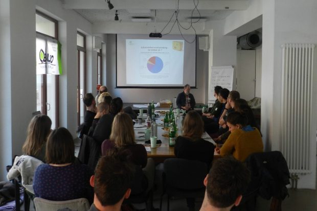 Nach einem bewegenden Grußwort von Peter Wasem, dem Leiter des Amts für Umweltschutz in Leipzig, sprach Benedikt Jacobs (BUND Leipzig) zum Thema Verpackungen und Plastikkrise. Anschließend stellte Dr. Matthias Wolf (Umweltinstitut Leipzig) Studien zu Ausmaß, Ursachen und Lösungen von Lebensmittelverschwendung in Sachsen-Anhalt und Leipzig vor.