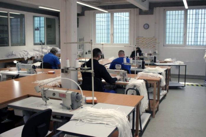 Die Näherei der Justizvollzugsanstalt Chemnitz stellt seit letzter Woche für das Deutsche Rote Kreuz 15.000 Stück Mund-Nase-Schutzmasken aus medizinischem Vlies her und unterstützt damit die Mitarbeiter des DRK-Rettungsdienstes Chemnitz sowie des DRK-Rettungszweckverbandes Chemnitz/Erzgebirge bei der Aufrechterhaltung der Einsatzbereitschaft. Auch für das Polizeiverwaltungsamt werden 14.000 Schutzmasken genäht.