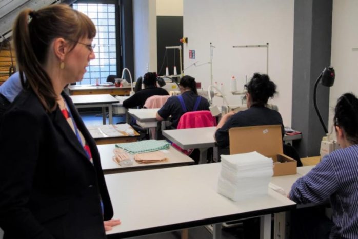 Heute hat Justizministerin Katja Meier die Näherei der Justizvollzugsanstalt Chemnitz besucht und allen Bediensteten und Gefangenen ihren Dank für die Herstellung von Schutzmasken ausgesprochen. In den Arbeitsbetrieben der Justizvollzugsanstalten Chemnitz und Torgau werden durch Gefangene unter Anleitung von Bediensteten Schutzmasken für das Deutsche Rote Kreuz, das Polizeiverwaltungsamt und für den eigenen Bedarf der sächsischen Justizvollzugsanstalten genäht.